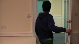 This is the last picture of my opening sequence. It shows Pablo closing the door to go out of his room after he put all his belongings in the room. I think this picture ends pretty well my opening scene and may open to a whole new scene. We can also notice that we took off his coat.